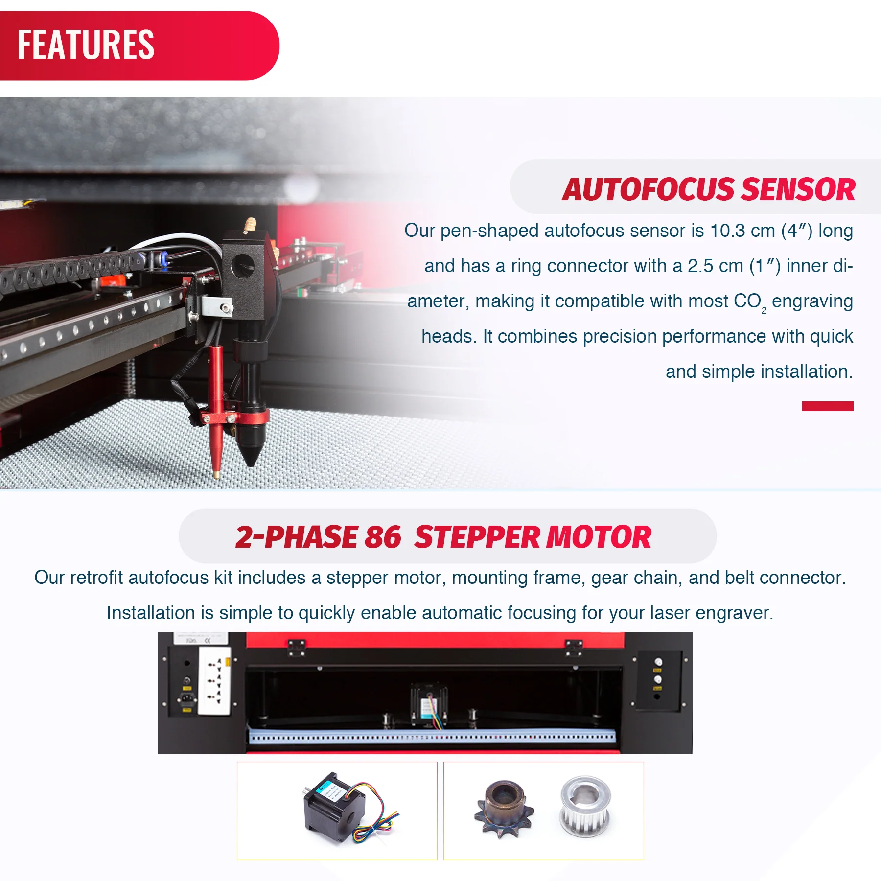 - LEAD SHINE STEPPER DRIVER: The autofocus kit comes with an easy-to-install industrial-grade Leadshine M860C stepper motor controller. This feature is compatible with most CO2 laser engravers to control the rotation angle and speed of your stepper motor.